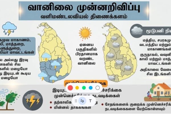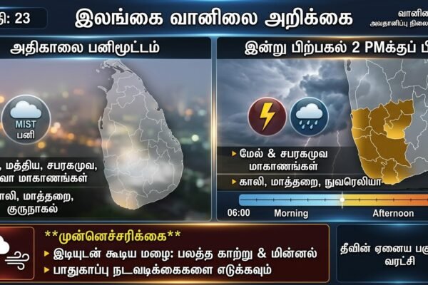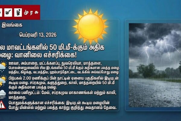 இலங்கை வானிலை அவசர அறிவிப்பு: இன்று பி.ப 1 மணிக்குப் பின் பெரும்பாலான பகுதிகளில் இடி மின்னலுடன் கூடிய கனமழை!