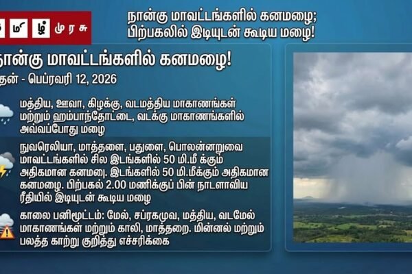 இலங்கை வடகீழ் பருவப்பெயர்ச்சி ஆரம்பம்: வடக்கு, கிழக்கு, வடமத்திய மாகாணங்களில் இன்றிரவு முதல் மழை அதிகரிக்கும்! – வளிமண்டலவியல் திணைக்களம்! dinesh kumar 4 months ago4 months ago