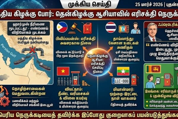 மத்திய கிழக்கு போர்: தென்கிழக்கு ஆசியா மற்றும் இலங்கையில் எரிசக்தி நெருக்கடி – அவசரகால நடவடிக்கைகள் தீவிரம்!