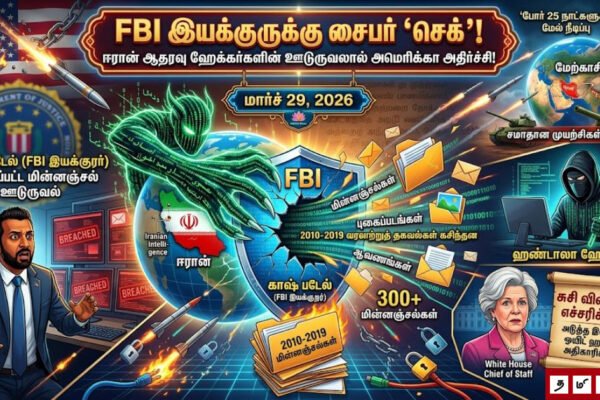 உலகம் 🛡️ அமெரிக்கப் பாதுகாப்பு கட்டமைப்பில் ‘ஓட்டை’! FBI இயக்குநரின் மின்னஞ்சலைத் திருடிய ஈரான் ஹேக்கர்கள்! 😱 5 days ago5 days ago