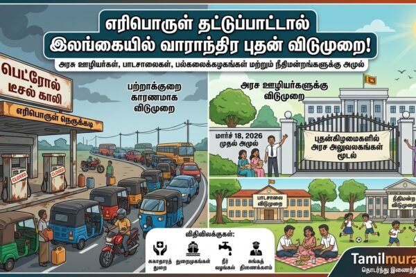 எரிபொருள் நெருக்கடி காரணமாக புதன்கிழமைகளில் அரசுப் பள்ளிகள், பல்கலைக்கழகங்கள் மற்றும் அரசு அலுவலகங்களுக்கு விடுமுறை: