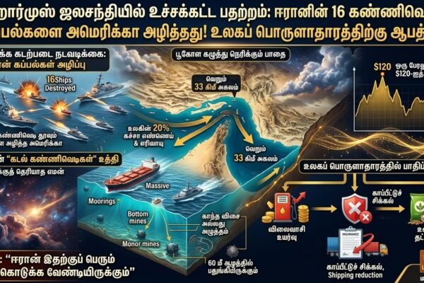 ஹார்முஸ் ஜலசந்தியில் உச்சக்கட்ட பதற்றம்: ஈரானின் 16 கண்ணிவெடி கப்பல்களை அமெரிக்கா அழித்தது! உலகப் பொருளாதாரத்திற்கு ஆபத்து.