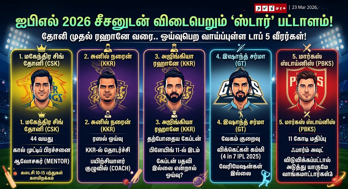 🏏 ஐபிஎல் 2026-உடன் விடைபெறும் ‘ஸ்டார்’ பட்டாளம்! தோனி முதல் ரஹானே வரை.. ஓய்வுபெற வாய்ப்புள்ள டாப் 5 வீரர்கள்!