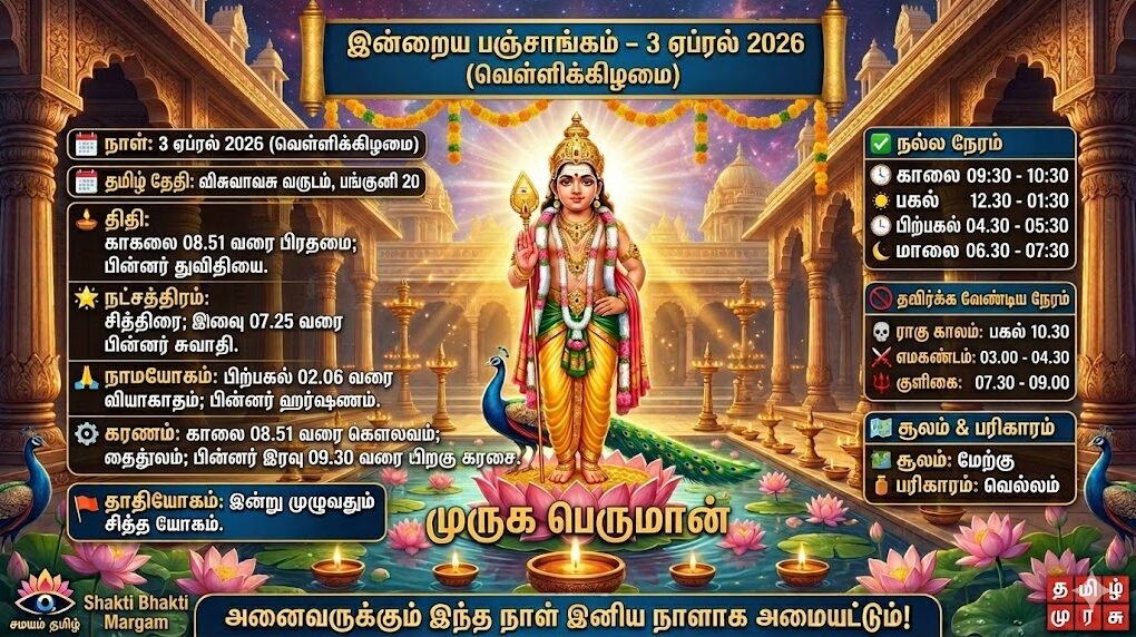 இலங்கை 1 day ago1 day ago 🌟 இன்றைய பஞ்சாங்கம் – 3 ஏப்ரல் 2026 (வெள்ளிக்கிழமை) 🌟 விசுவாவசு வருடம் பங்குனி… ‘1990 சுவ செரிய’ ஆம்புலன்ஸ் சேவையின் புதிய தலைமையகம் திறப்பு: அமைச்சர் நளிந்த ஜயதிஸ்ஸ தலைமையில் விழா
