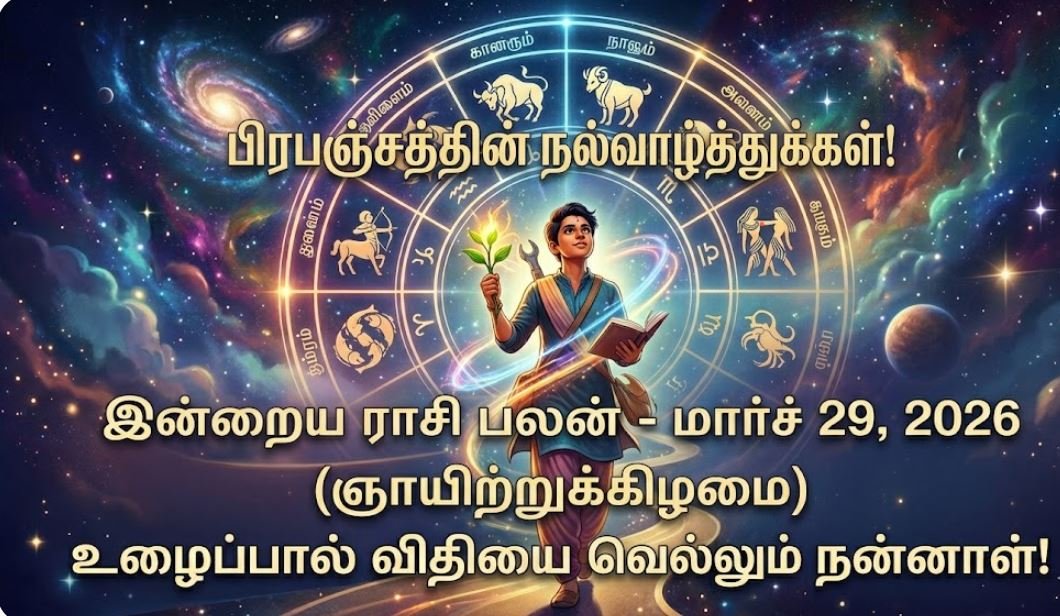 இன்று மார்ச் 29, 2026 (ஞாயிற்றுக்கிழமை), பங்குனி மாதம் 15-ஆம் தேதி. பிரபஞ்ச ஆற்றல் மிகுந்த ‘சித்த யோகம்’ நிறைந்த நன்னாள். மேலும், மனதையும் ஆன்மாவையும் தூய்மைப்படுத்தும் ‘சர்வ ஏகாதசி’ திதியும் இன்று அமைகிறது. சந்திரன் இன்று ஆயில்யம் நட்சத்திரத்திலிருந்து மகம் நட்சத்திரத்திற்குத் தன் பயணத்தைத் தொடர்கிறார் (கடக ராசியிலிருந்து சிம்ம ராசிக்கு மாறுகிறார்).