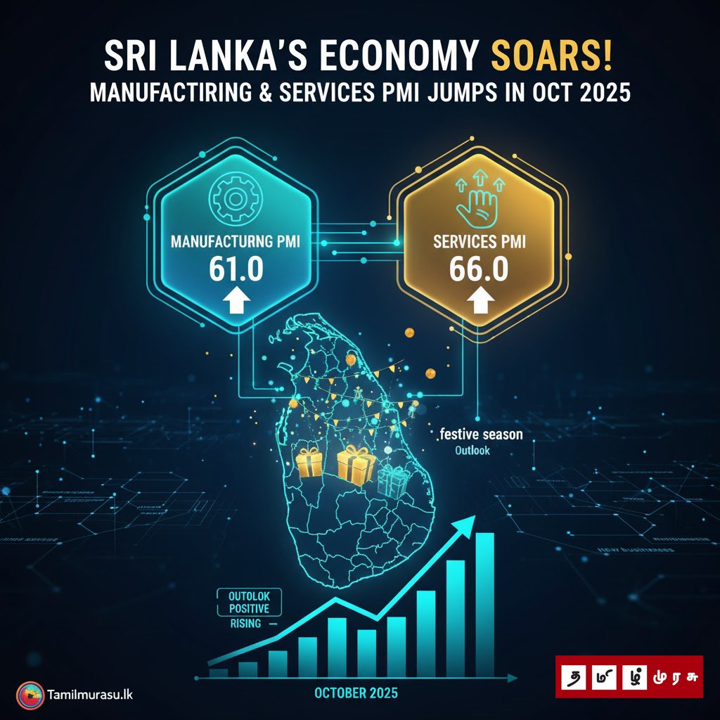 இலங்கை மத்திய வங்கியின் (CBSL) சமீபத்திய அறிக்கையின்படி, உற்பத்தி PMI அக்டோபரில் 61.0 ஆக உயர்ந்தது, அதே நேரத்தில் சேவைகள் PMI 66.0 ஐ எட்டியது.