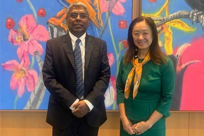 கொழும்பு, டிசம்பர் 13: இலங்கைக்கான அமெரிக்கத் தூதுவர் ஜூலி சங் (Julie Chung) மற்றும் ஜனாதிபதியின் அறிவியல் மற்றும் தொழில்நுட்பத்துக்கான சிரேஷ்ட ஆலோசகர் பேராசிரியர் கோமிக உடுகமசூரிய (Prof. Gomika Udugamasooriya) ஆகியோருக்கு இடையில் கொழும்பில் உள்ள அமெரிக்கத் தூதரகத்தில் முக்கிய சந்திப்பு ஒன்று நடைபெற்றது.