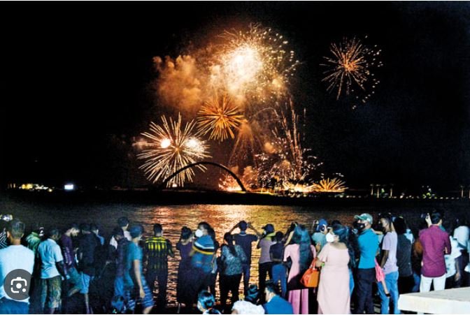 • காலி முகத்திடல்: நாட்டின் வர்த்தகத் தலைநகரான கொழும்பில், குறிப்பாக காலி முகத்திடலில் (Galle Face Green) நள்ளிரவு 12 மணிக்குக் கண்கவர் வானவேடிக்கைகள் நிகழ்த்தப்பட்டன.