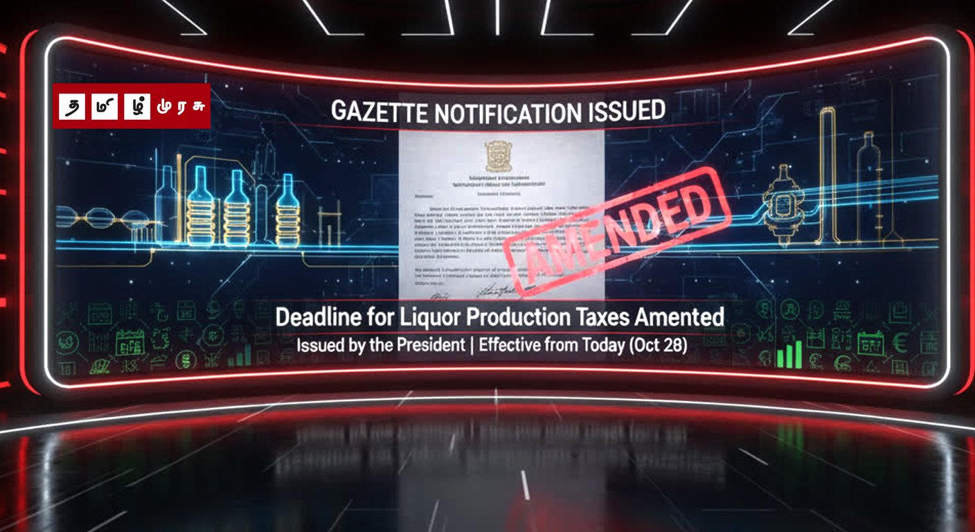 கொழும்பு: மதுபான உற்பத்தி மீதான வரி செலுத்துவதற்கான காலக்கெடுவை திருத்தி புதிய வர்த்தமானி அறிவித்தல் ஒன்று வெளியிடப்பட்டுள்ளது.