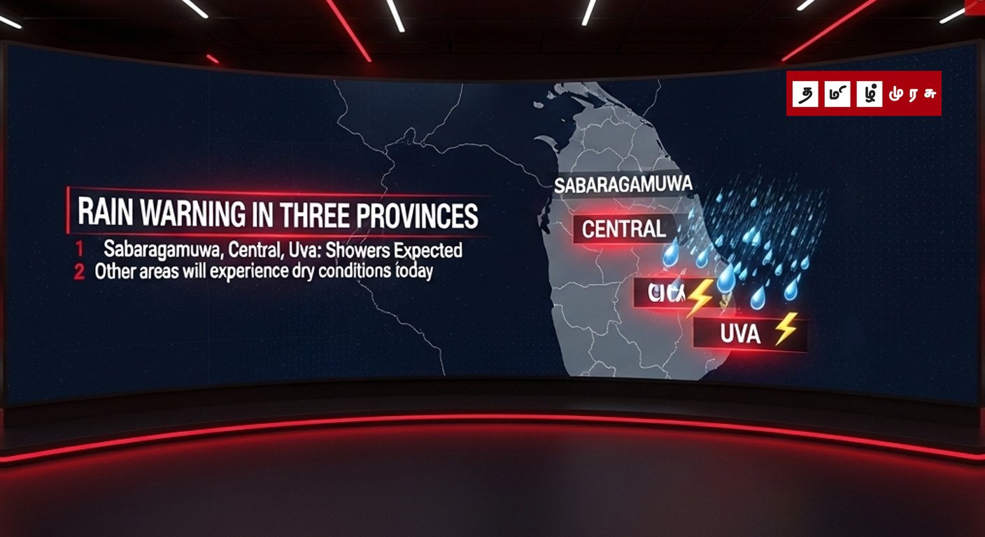 கொழும்பு: சப்ரகமுவ, மத்திய மற்றும் ஊவா மாகாணங்களில் இன்று (ஒக். 30) பிற்பகல் 4.00 மணிக்குப் பிறகு சில இடங்களில் மழை அல்லது இடியுடன் கூடிய மழை பெய்யக்கூடும் என வளிமண்டலவியல் திணைக்களம் அறிவித்துள்ளது.